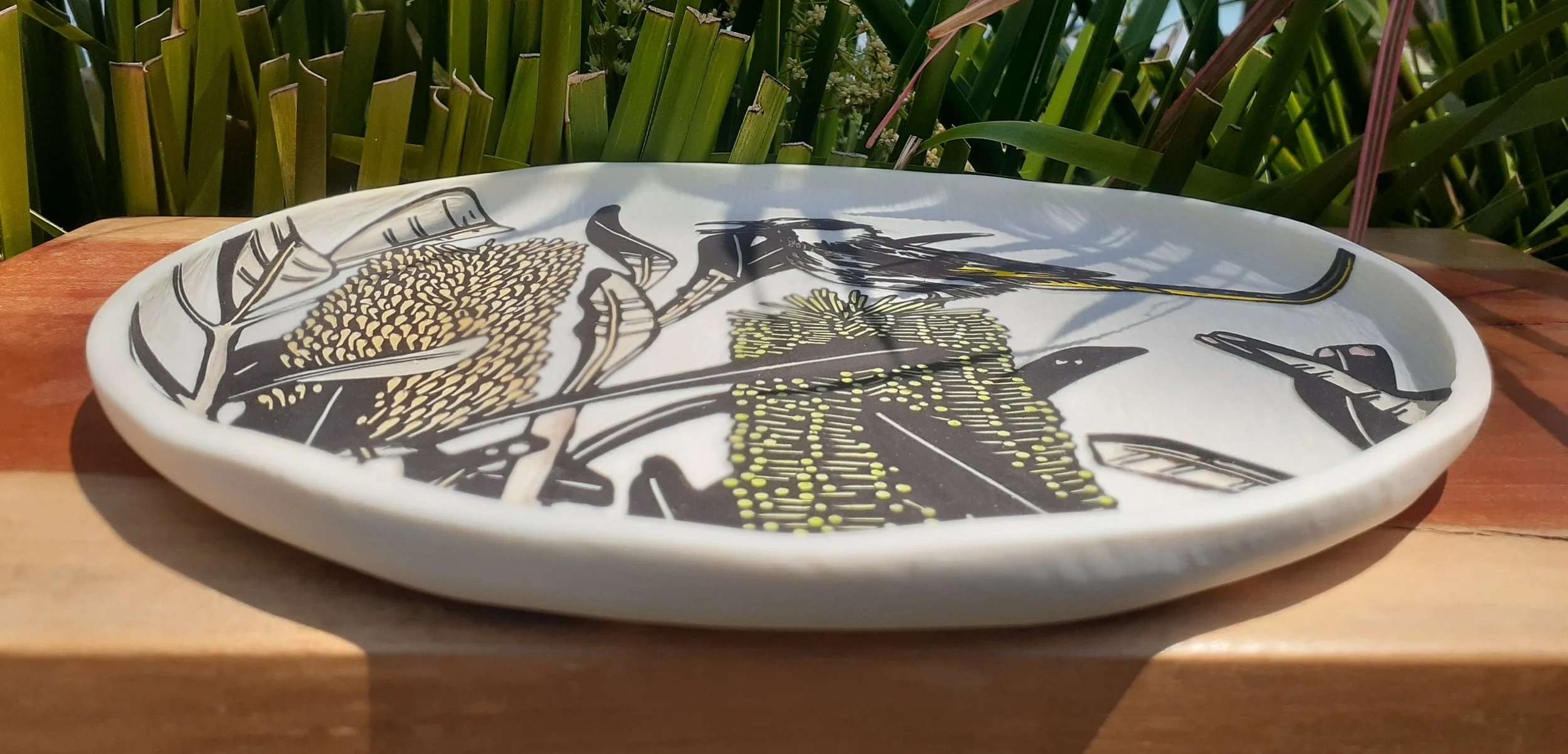 Porcelain Plate - White-Cheeked Honeyeater
